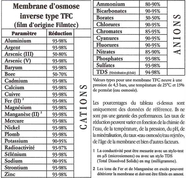 semi-perméable d’osmose inverse. En moyenne les substances solides sont rejetées à environ 85- 98%.
