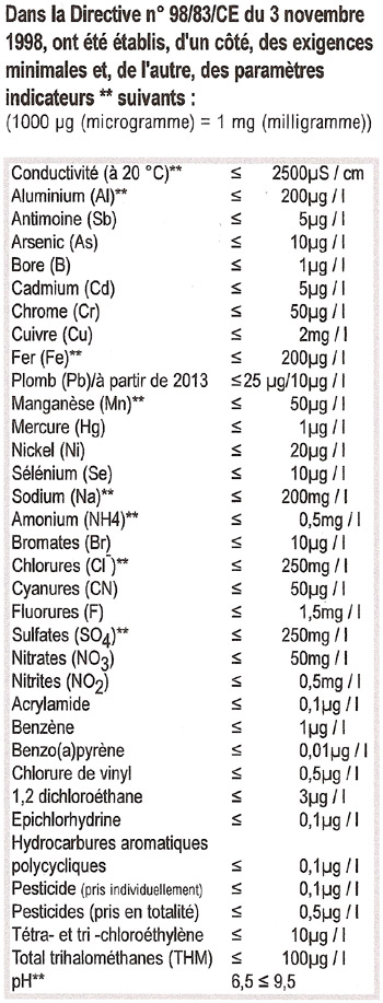 D’autre part, les eaux dites ‘minérales’ sont pour la plupart trop minéralisées. Parfois elles sont même contre-indiquées lors de certaines maladies. Ainsi, par exemple, un excès d’ions de calcium dissous dans l’eau entraîne, paradoxalement, une décalcification: la chaux minérale empêche l’assimilation du calcium des laitages et des œufs (Dr J VALNET in ‘‘aromathérapie’’ chez poche).