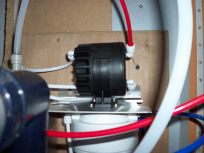 C’est une pompe hydraulique qui récupère l’énergie de l’eau rejetée pour refouler l’eau osmosée dans le réservoir. La ‘‘contre-pression’’ du réservoir est ainsi complètement annulée. |